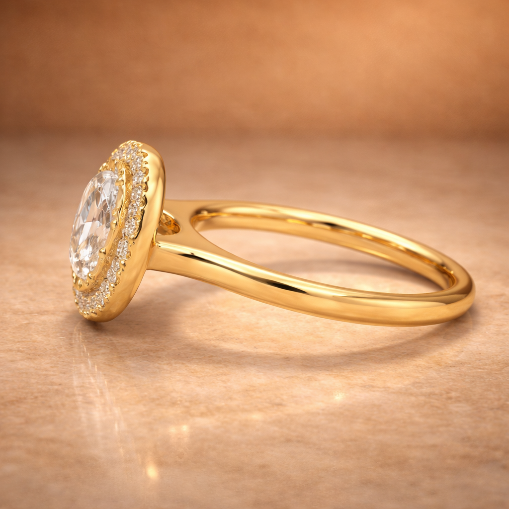 3 Carat Oval Halo Engagement Ring – E VVS2 Lab Diamond
