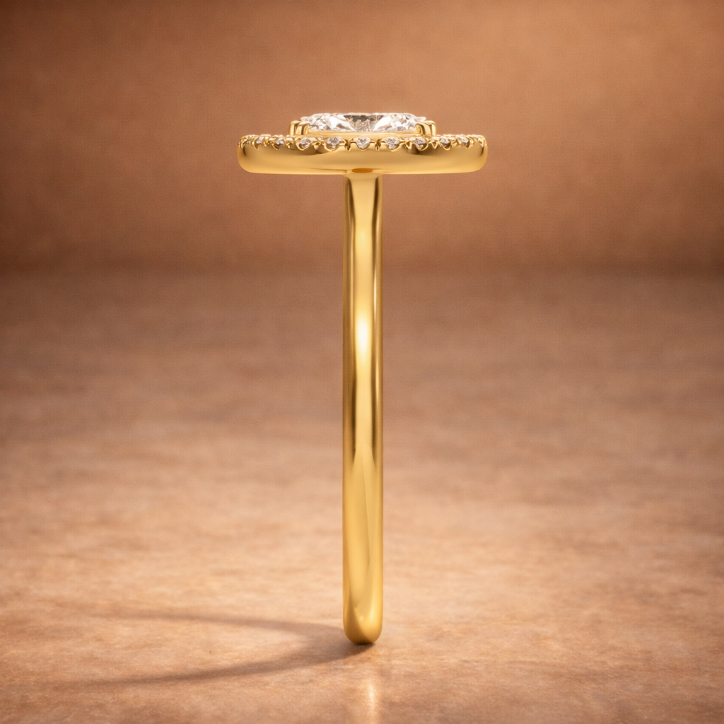 This classic halo frame creates a bold yet refined look, making the ring appear even more radiant.