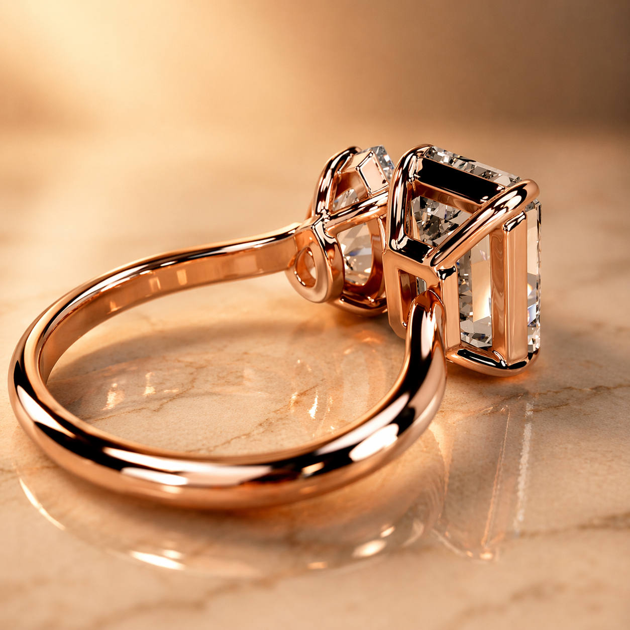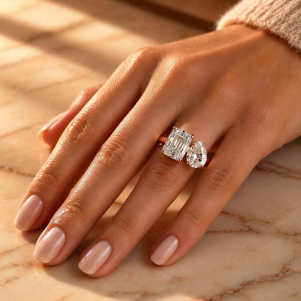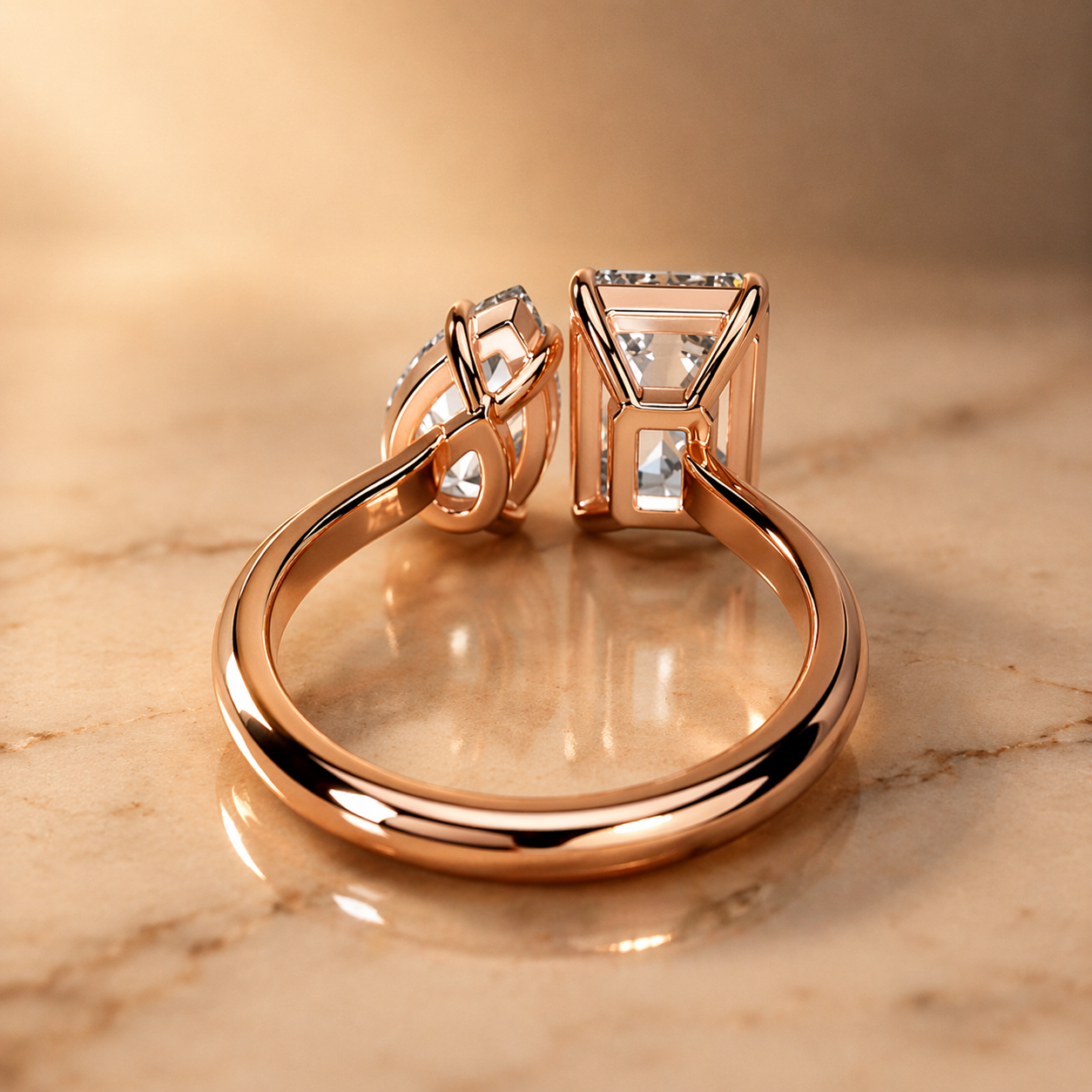 4 Carat Toi et Moi Engagement Ring – Emerald Cut & Pear Shape Lab Diamonds in Rose Gold