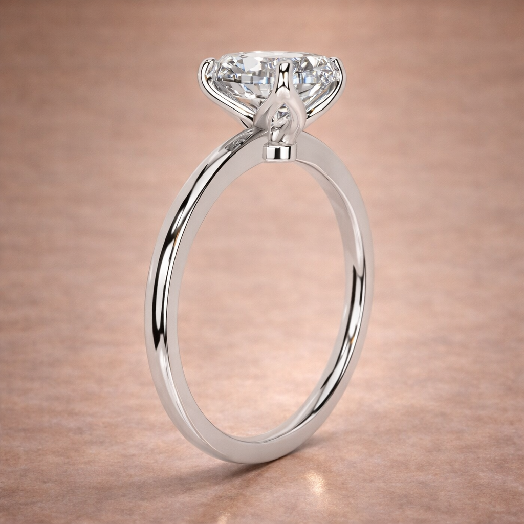 This is our luxury 2.50 Carat oval-shaped diamond solitaire engagement ring. Crafted with love and precision, this exquisite ring features a dazzling 2.50 carat oval-shaped lab-grown diamond, boasting a brilliant E color and VVS2 clarity. But that’s not all! Our ring is designed to impress from every angle, with a hidden halo that adds a touch of mystery and enchantment.