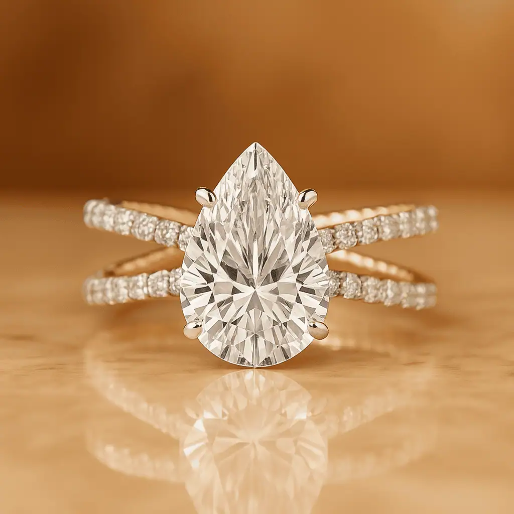 2 Carat Pear Shape Lab Diamond X Style Engagement Ring