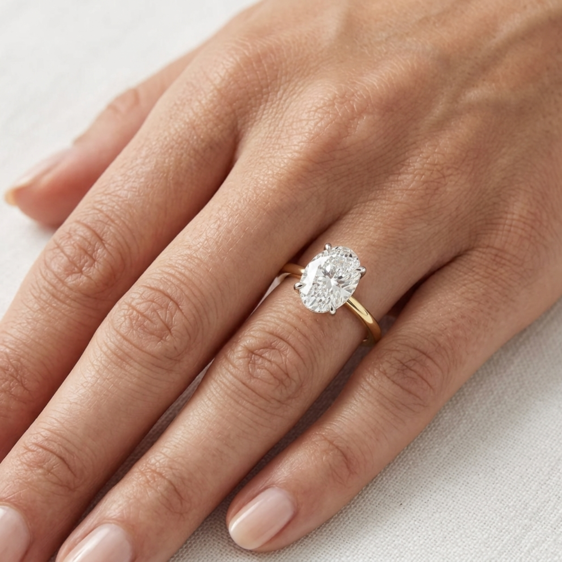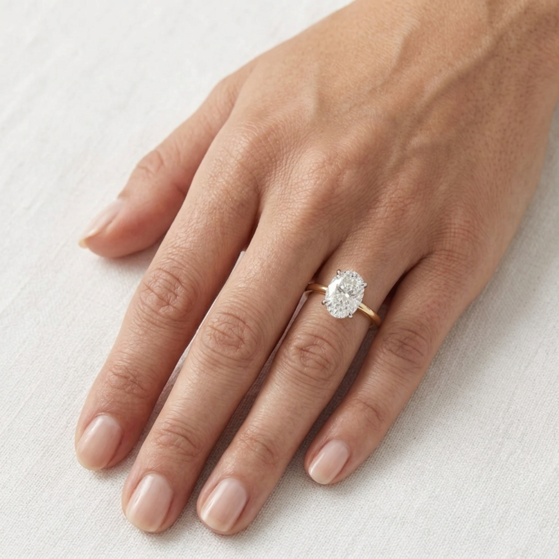 2 Carat Oval Diamond Engagement Ring – Two-Tone Gold (Yellow Gold Band & White Gold Prongs)