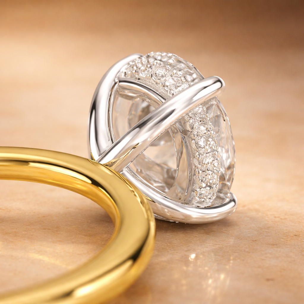 This two-tone setting is not only beautiful but also practical, as it maximizes the diamond’s sparkle while offering a balanced and luxurious aesthetic.