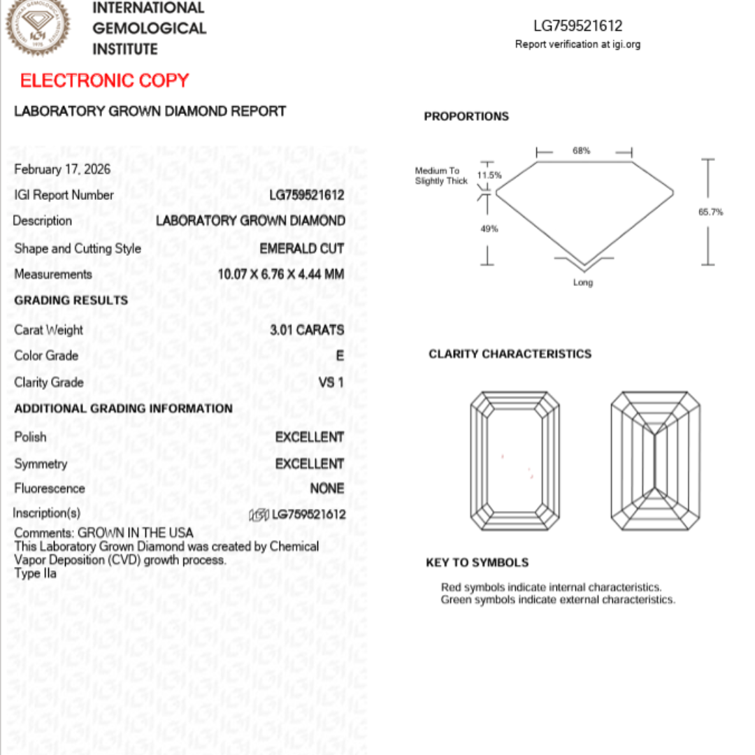 Remarable 3 Carat Emerald cut lab diamond,