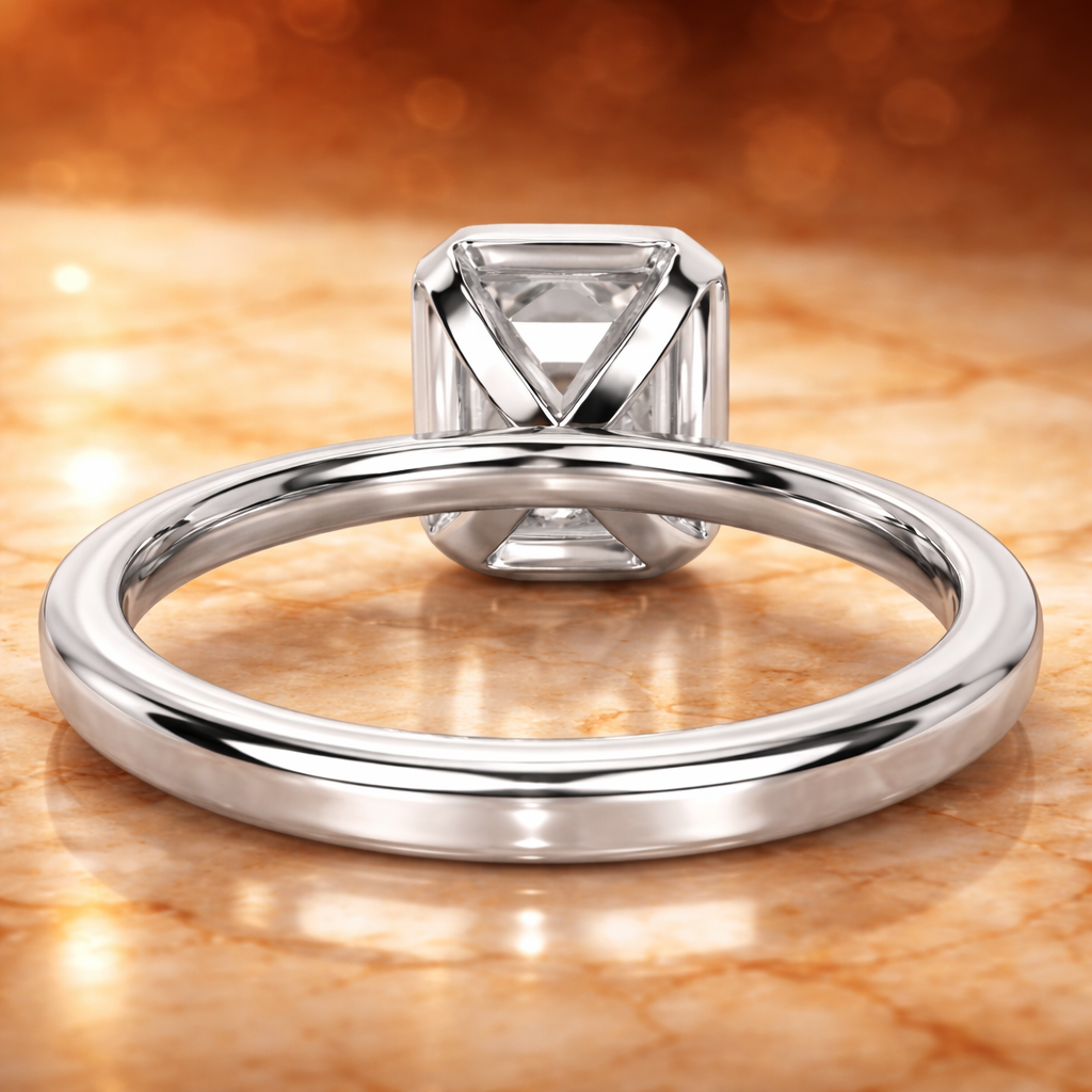 5 Carat Emerald Cut Lab Grown Diamond Ring – Bezel Setting in 14K White Gold